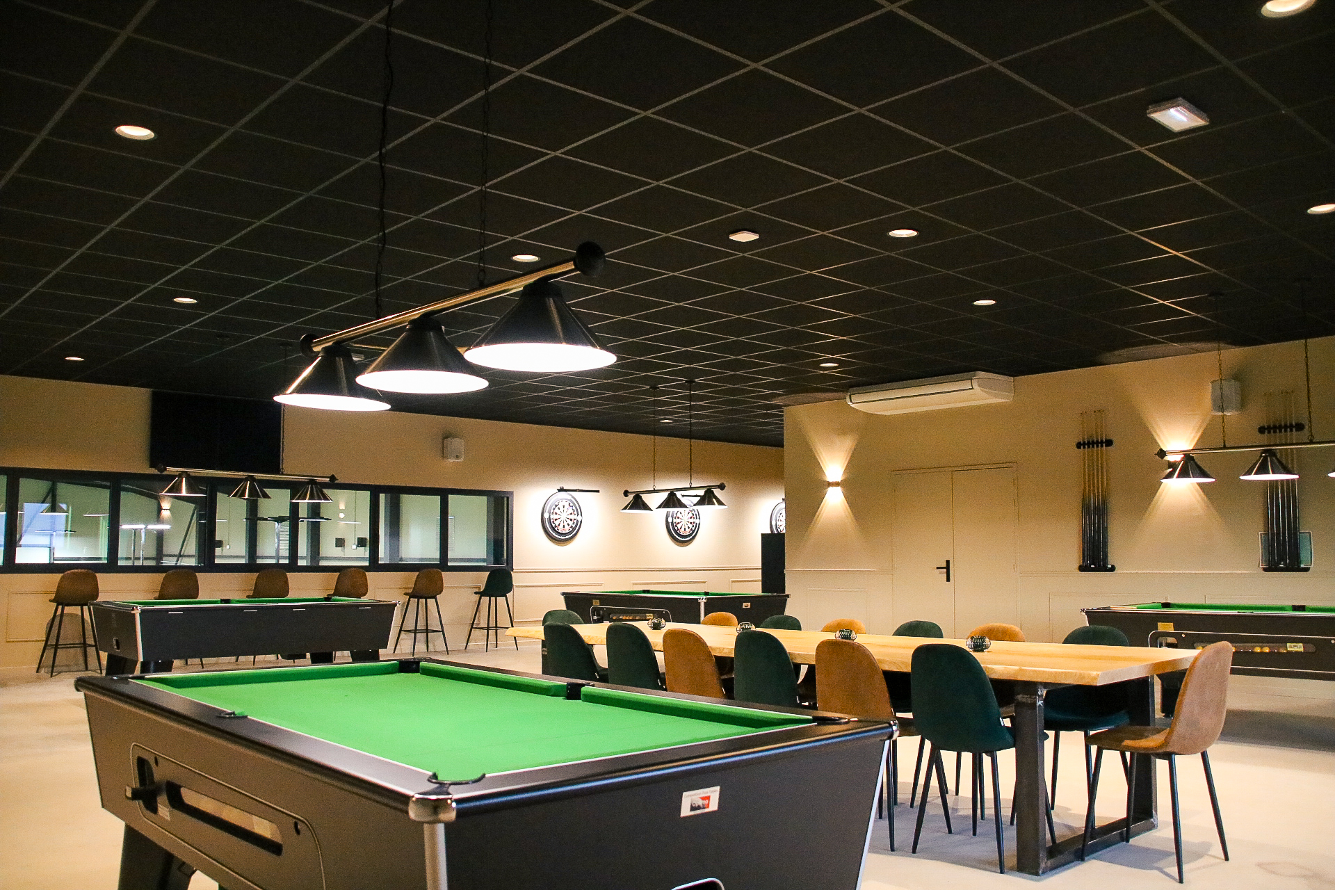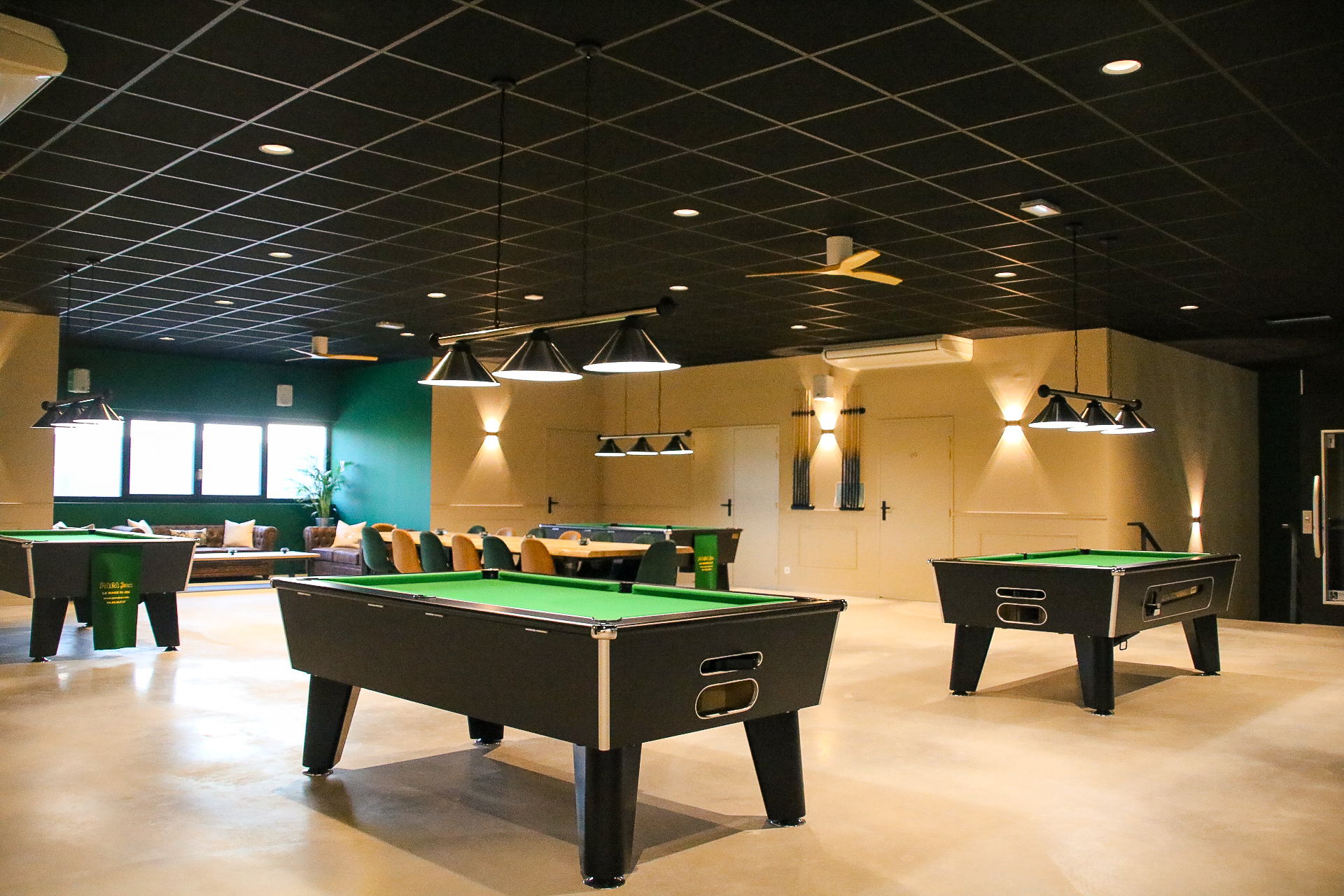 Un lieu unique de 1400 m² dont 600 m² d’espaces de vie (restaurant, billard, cocktails, réunions). À l’étage, 2 salles de réunion et un espace de 200 m² entièrement privatisable, idéal pour vos événements professionnels ou privés.